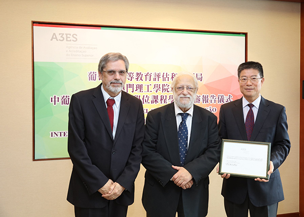 澳門理工學院的中葡/葡中翻譯學士學位課程成功通過葡萄牙高等教育評估和認可局(A3ES)的學術評審,該局主席Alberto Amaral教授於澳門,向澳門理工學院頒發中葡/葡中翻譯學士學位課程學術評審證書及報告,肯定理工的不懈努力,為學生帶來高質量的辦學水準,讚揚理工學院不斷進步,再次祝賀澳門理工學院眾多學位課程獲國際認可,與國際高等教育接軌。