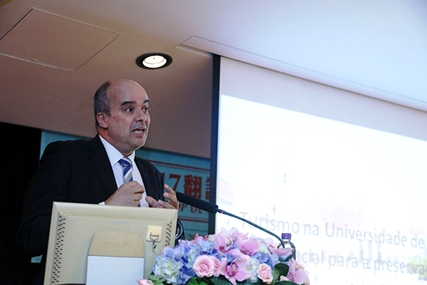 中國翻譯協會常務副會長、中國外文局原副局長、語言大資料聯盟聯席主席黃友義教授發表題為“為什麼翻譯對中國越來越重要?”的演講,闡述翻譯對國家“一帶一路”發展實施的重要性。黃教授分享他從事翻譯工作四十多年累積的案例,強調要成為專業譯者,語言能力、綜合知識及國際傳播意識缺一不可。為加強師生的人文意識,葡萄牙科英布拉大學副校長Luis Filipe Martins Menezes教授探討世界文化遺產的文化保育議題。他指出,科英布拉大學座落於世界文化遺產保育區內,是葡萄牙的歷史文化寶藏,因此保護古蹟工作成為可持續旅遊發展的一項重要舉措。隨後,澳門理工學院院長李向玉教授就中國的葡語教學和翻譯教學題目發言,介紹中國現時中葡翻譯教學的概況,並介紹澳門理工學院百年翻譯教學及研究的發展及平台作用,推動中葡翻譯界的交流與合作推動學術交流。