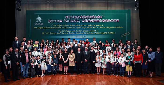 本屆頒獎典禮主禮嘉賓有:中央人民政府駐澳門特別行政區聯絡辦公室教育與青年部部長代表岑嘉儀副處長、澳門理工學院李向玉院長、教育暨青年局教育研究暨教育改革輔助處黃逸恆處長、行政公職局公務人員培訓中心培訓活動組織處黃華欣代處長、澳門日報林保華副總編輯、澳門天主教學校聯會陳文彬副理事長、澳門中華教育會楊珮欣常務理事、澳門廣播電視股份有限公司英文電視新聞科馬天龍經理、澳門理工學院鄭妙嫻秘書長、第十六屆全澳英語演講比賽暨第二十三屆「21世紀杯」全國英語演講大賽澳門分區賽澳門理工學院組委會執行主席林子予教授以及多所高等院校代表等出席。