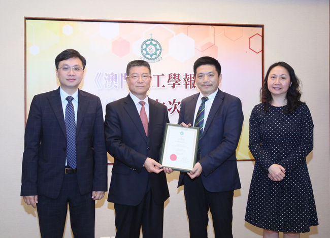 澳門理工學院院長李向玉教授(左二)向毛思慧教授(右二)頒授名譽教授學銜