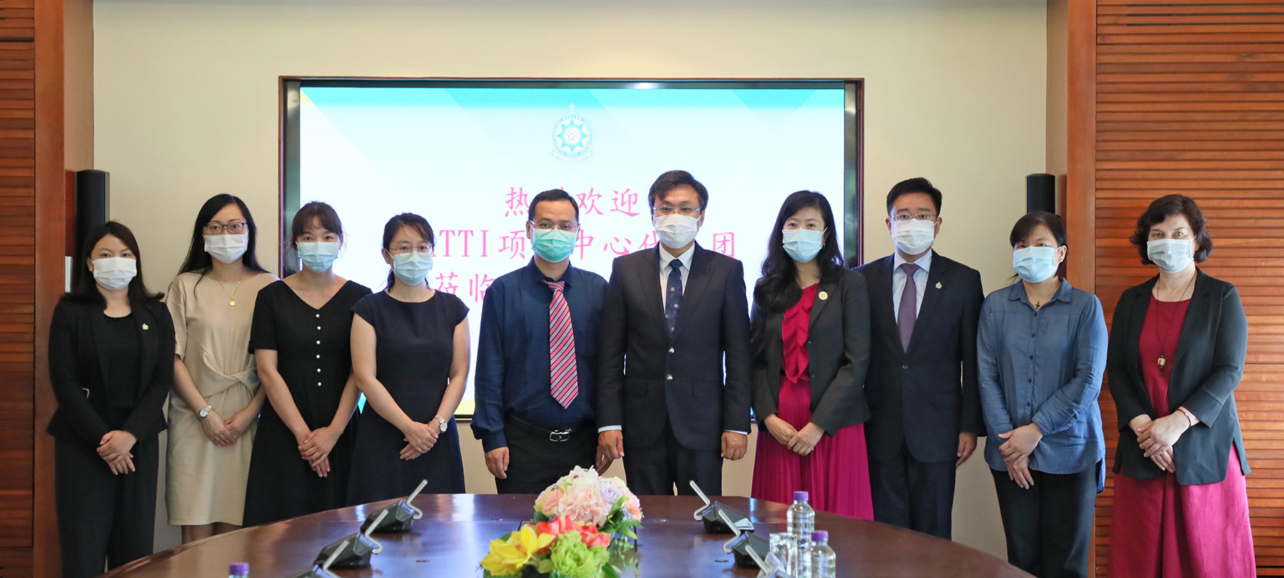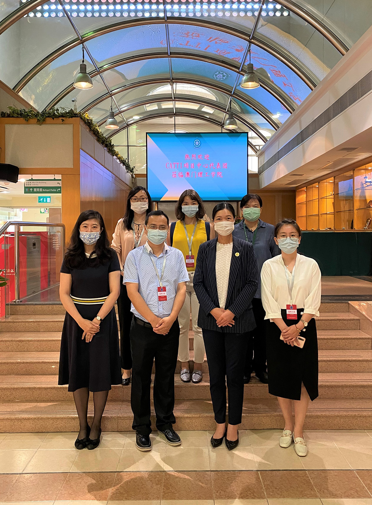 澳門理工學院院長嚴肇基(右五)與中國外文局CATTI項目管理中心總經理江平(左五)一行商討合作