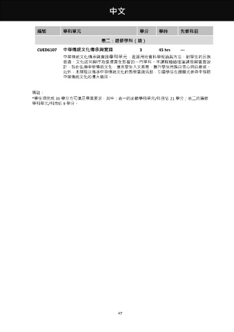 CUED6107 中華傳統文化傳承與實踐 3 45 hrs ---