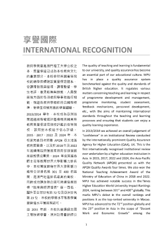 量管理水平獲國際認可。 MPU has advanced to the 72 position globally and