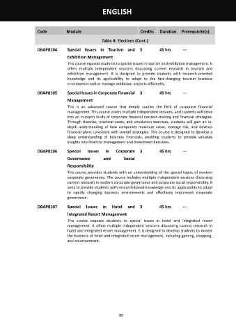 DBAP8104 Special Issues in Tourism and 3 45 hrs ---