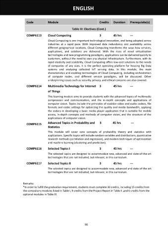 Table III: Electives (Cont.)