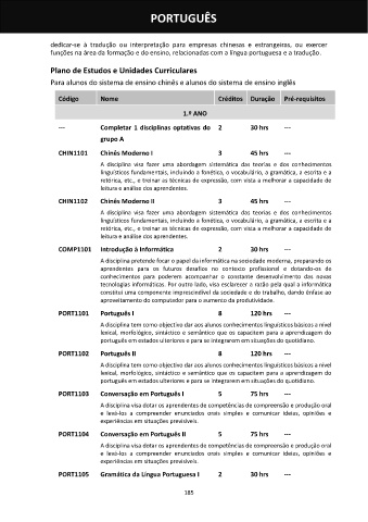 PORT1101 Português I 8 120 hrs ---