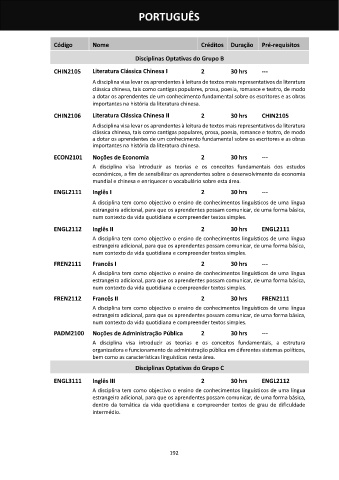 CHIN2106 Literatura Clássica Chinesa II 2 30 hrs CHIN2105