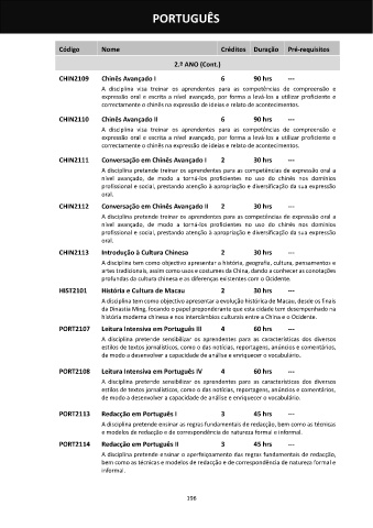 PORT2114 Redacção em Português II 3 45 hrs ---