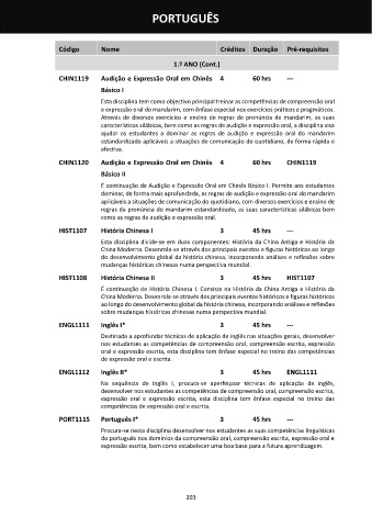 CHIN1120 Audição e Expressão Oral em Chinês 4 60 hrs CHIN1119