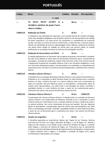 CHIN2130 Literatura Clássica Chinesa II 3 45 hrs CHIN2129
