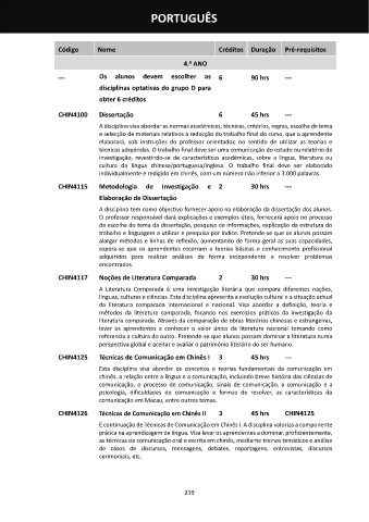 CHIN4125 Técnicas de Comunicação em Chinês I 3 45 hrs ---