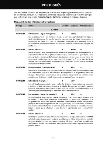 PORT1131 Estruturas da Língua Portuguesa I 4 60 hrs ---