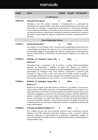 PTEN3121 Didáctica do Português Língua Não 4 60hrs ---