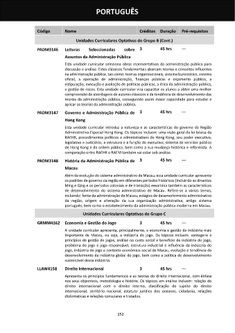 Além da evolução do sistema administrativo de Macau, esta unidade curricular apresenta