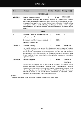 MENG3111 Science Communications 3 45 hrs MENG2112