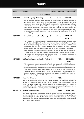 CSAI3122 Natural Language Processing 3 45 hrs CSAI2121