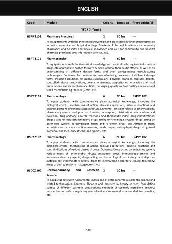 BSPT2101 Pharmaceutics 4 60 hrs ---