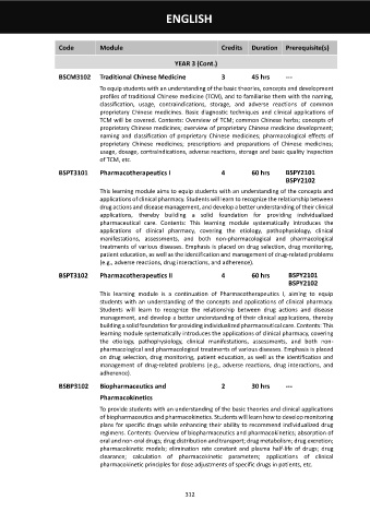 BSCM3102 Traditional Chinese Medicine 3 45 hrs ---