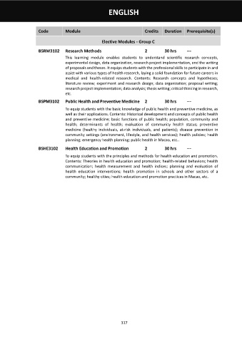 BSHE3102 Health Education and Promotion 2 30 hrs ---