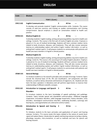 STEN1101 Medical English (I) 3 45 hrs ---