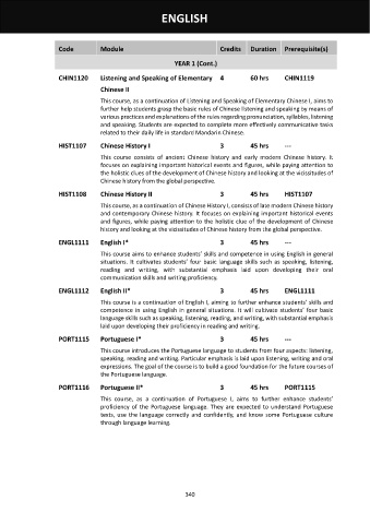 CHIN1120 Listening and Speaking of Elementary 4 60 hrs CHIN1119