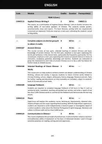 CHIN3116 Applied Chinese Writing II 2 30 hrs CHIN3115