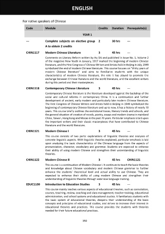 CHIN1122 Modern Chinese II 3 45 hrs CHIN1121