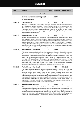 CHIN2130 Ancient Chinese Literature II 3 45 hrs CHIN2129