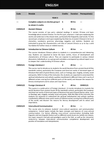 CHIN3122 Foreign Literature II 3 45 hrs CHIN3121