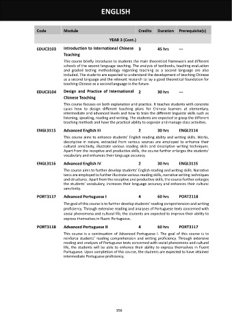 PORT3118 Advanced Portuguese II 4 60 hrs PORT3117