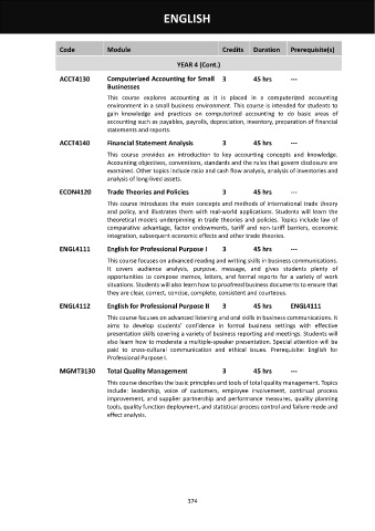 ENGL4112 English for Professional Purpose II 3 45 hrs ENGL4111