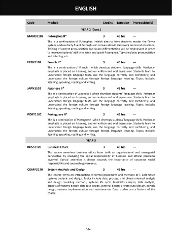 MAND1102 Putonghua II* 3 45 hrs ---