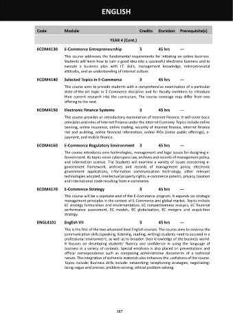 ECOM4130 E-Commerce Entrepreneurship 3 45 hrs ---