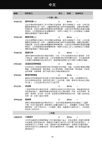 STEN1102 醫學英語(二) 3 45 hrs ---
