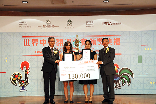 Cada equipa participante do “Concurso Mundial de Tradução Chinês-Português” é composta por 2 a 3 alunos e um professor orientador, e faz a tradução de dez mil frases chinesas para português, as quais são extraídas pela Organização, de artigos ou de livros, devendo as equipas participantes entregar a tradução no prazo de três meses após a recepção dos textos originais. Decorridos alguns meses, chegou o dia da Cerimónia de Atribuição de Prémios: o primeiro lugar foi atribuído à equipa da Universidade do Minho, constituída pelos alunos Yang Yu, Li Ling e Francisca Monteiro, orientada pelo professor Yu Yibing; o segundo lugar foi atribuído à equipa do Instituto Politécnico de Macau, constituída pelas alunas Patrícia Isabel Cecílio Vaz, Xing Yufei e Huang Liming, orientada pela professora Vânia Cecilia Almeida Rego; o terceiro lugar foi atribuído à equipa da Universidade Jiaotong de Pequim, constituída pelos alunos Zou Yuping e Liu Han, orientada pelo professor Wang Chengxu. Além disso, para estimular a participação das instituições locais de Macau, a Organização criou “Prémios especiais para as equipas das instituições de Ensino Superior de Macau”, sendo contemplada com o primeiro lugar a equipa do IPM, constituída pelas alunas Chan Weng Tim, Sónia Jorge e Sofia Maria de Sousa Kou, orientada pela professora Maria de Lurdes Nogueira Escaleira, e com o segundo lugar a equipa da Universidade de Macau, constituída pelos alunos Hao Jianxiong, Liu Wen e Wang Ying, orientada pelo professor Júlio Reis Jatobá.