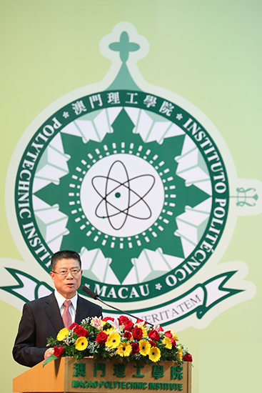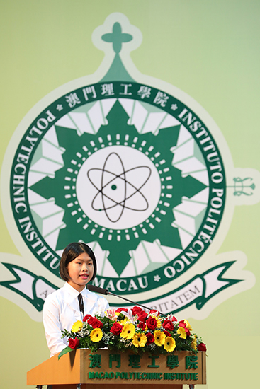 Nesta Cerimónia, o Presidente Lei manifestou as boas vindas aos novos alunos e transmitiu-lhes a mensagem de que o IPM vai seguir persistentemente o princípio de “pequeno, mas bonito; pequeno, mas maravilhoso”, tendo os alunos como sujeito principal e aproveitando bem os recursos disponíveis, a fim de garantir a qualidade dos recursos pedagógicos e do ambiente escolar para os alunos. À medida do desenvolvimento contínuo do IPM, têm sido registados vários progressos, como por exemplo, além de admitir condicionalmente os estudantes candidatos provenientes do Interior da China e do estrangeiro, o número dos estudantes candidatos locais ao IPM tem ficado em primeiro lugar entre as instituições de ensino superior de Macau, nos últimos sete anos consecutivos. O IPM não só dá importância ao estabelecimento da parceria académica com instituições famosas nacionais e internacionais, como do Interior da China, dos EUA, do Reino Unido e de Portugal, como também se dedica à constituição de um corpo docente de excelência, estimulando o desenvolvimento simultâneo dos trabalhos pedagógicos e científicos, no intuito de maximizar o nível académico dos docentes a tempo integral. Actualmente, o número dos professores doutorados representa 70,6% de todo o corpo docente do Instituto. Além disso, para melhor garantir e aumentar a qualidade do ensino, o IPM tem realizado os trabalhos de acreditação académica, sendo, assim, a primeira instituição do ensino superior na Ásia com a acreditação concedida pela agência da Inglaterra QAA. Como reforçado pelo Presidente do IPM, é essa soma de esforço que promove o pleno desenvolvimento do indivíduo como cidadão, pois a finalidade do IPM é formar alunos que tenham grandes ideias, integridade moral, boa educação e elevado sentido de disciplina.