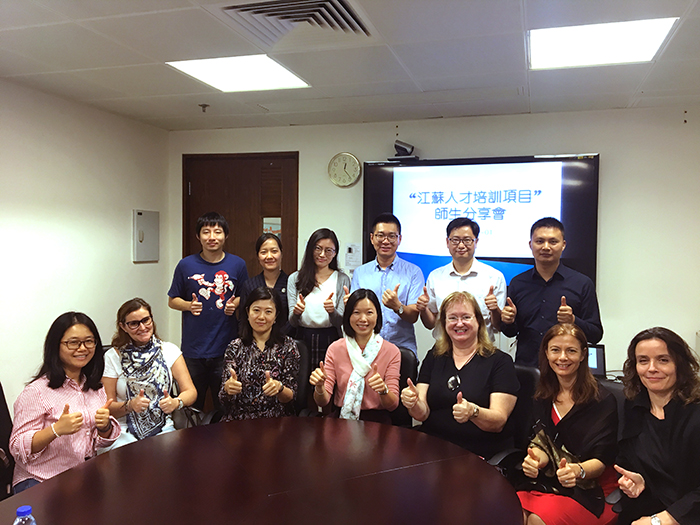 A primeira edição do “Programa de Formação de Talentos de Língua Portuguesa de Jiangsu” contou com sete formandos. Presentemente, todos os formandos completaram o programa de estudos de 12 meses in loco e encontram-se de momento a participar num estágio profissional de 3 meses organizado pelo Gabinete de Apoio ao Ensino Superior (GAES). De modo a aprofundar o conhecimento do funcionamento do programa de estudos e simultaneamente consolidar a ligação entre formadores e formandos, a Escola Superior de Línguas e Tradução (ESLT) do Instituto Politécnico de Macau, responsável pelo programa de estudos, organizou previamente um encontro de partilha entre professores e alunos do “Programa de Formação de Talentos de Língua Portuguesa de Jiangsu”, tendo sido convidados a vice-presidente do Conselho de Gestão do IPM, a Dra. Lei Ngan Lin, Vivian, a directora da ESLT, a Dra. Han Lili, o corpo docente responsável pelo leccionamento do programa de estudos e todos os formandos.