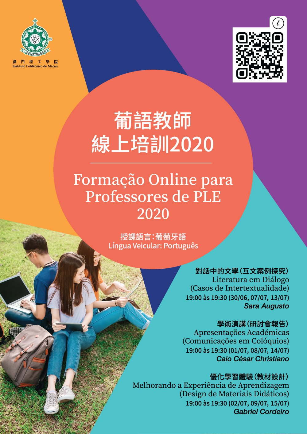 Tendo em vista promover a construção do Centro Internacional Português de Formação e da Base de Formação de Quadros Bilingues em Chinês e Português pelo Governo da RAEM, bem como apoiar o desenvolvimento das competências académicas e técnicas pedagógicas dos docentes de língua portuguesa, o Centro Pedagógico e Científico da Língua Portuguesa (CPCLP) do Instituto Politécnico de Macau (IPM) tem organizado, ao longo dos anos, cursos de formação destinados a docentes desta língua provenientes de instituições de ensino superior, tendo alcançado resultados muito positivos. Continuando esta tradição, nas circunstâncias presentes de epidemia, o CPCLP organizará, durante o Verão deste ano, uma série de formações online com participação gratuita, a que serão bem-vindos todos os professores de língua portuguesa de instituições de ensino superior de Macau, do Interior da China e de outras regiões de Ásia-Pacífico.