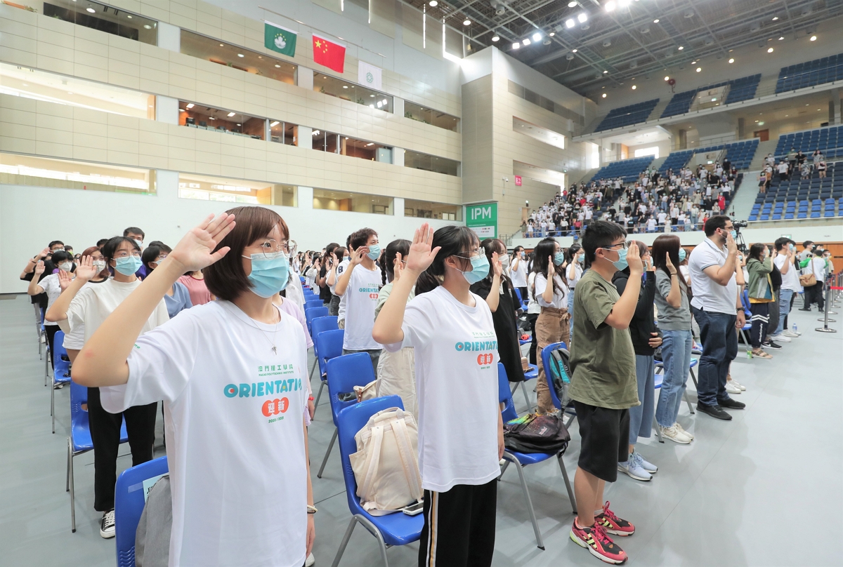 O Instituto Politécnico de Macau recebe 1100 novos alunos, divulgando a tradição de Amor pela Pátria e por Macau