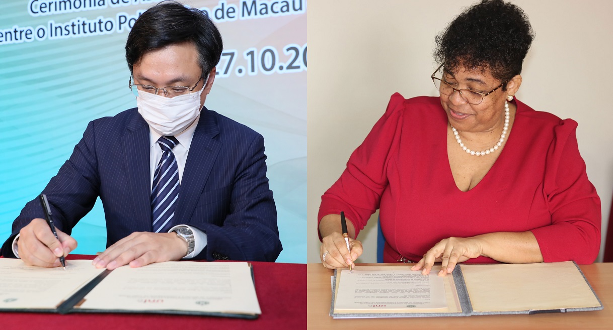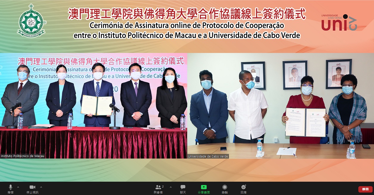 Tendo em vista aprofundar as vantagens de Macau como Plataforma entre a China e os Países de Língua Portuguesa, desempenhar o seu papel como ponte de ligação, bem como reforçar a cooperação académica sino-lusófona e apoiar a construção da Base de Formação de Quadros Bilingues em Chinês e Português, o Instituto Politécnico de Macau (IPM) reuniu-se virtualmente com a Universidade de Cabo Verde (Uni-CV), no dia 27 de Outubro. Assinaram um protocolo de cooperação, em representação das respectivas instituições, o Presidente do IPM, Im Sio Kei e a Reitora da Uni-CV, Judite Medina do Nascimento. As duas partes esperam, através deste protocolo, desenvolver cooperações nas áreas da formação de quadros inovadores, do aprofundamento do intercâmbio académico, assim como da elevação do nível de investigação científica. Pretendem ainda implementar a partilha de vantagens e de recursos, possibilitando, desta forma, a formação conjunta de mais quadros altamente qualificados para a iniciativa “Uma Faixa, Uma Rota” e para a construção da Grande Baía Guangdong-Hong Kong-Macau.