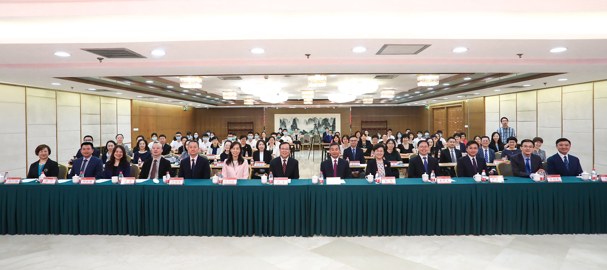 Fotografia em grupo na Cerimónia de Assinatura do Protocolo de Cooperação Académica entre o Centro de Ciências da Saúde da Universidade de Pequim e o IPM na área de enfermagem