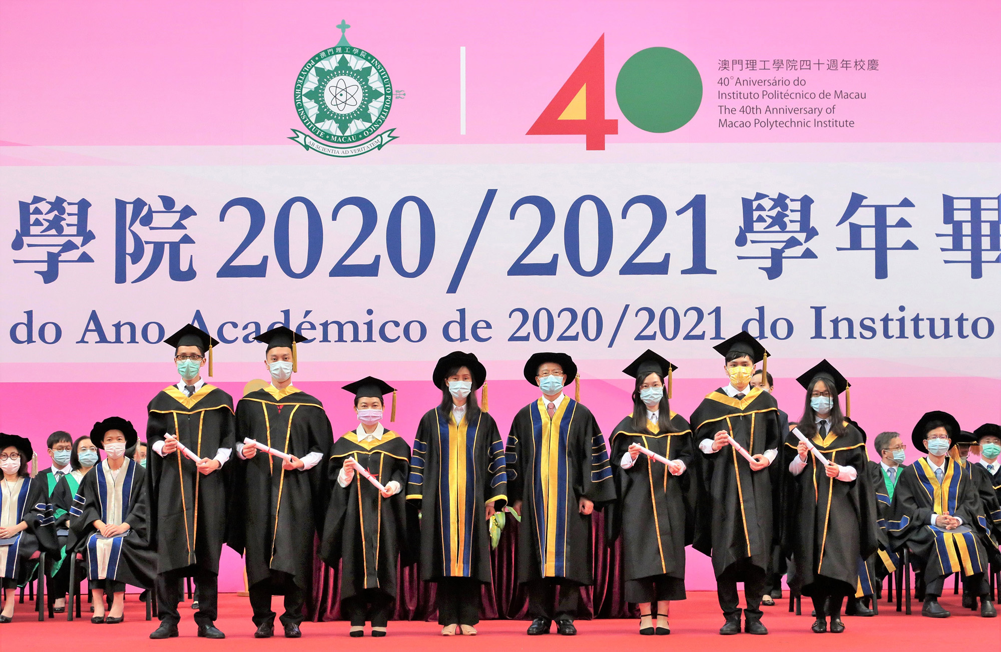 A Cerimónia de Graduação do Ano Académico 2020/2021 do Instituto Politécnico de Macau teve lugar no dia 10 de Junho, pelas 16h00, no Pavilhão Polidesportivo do mesmo Instituto, com transmissão em directo pela internet. A Cerimónia foi iniciada com o hastear da Bandeira Nacional e com a execução instrumental e vocal do Hino Nacional da República Popular da China, seguindo-se a atribuição dos certificados de graus académicos. Graduaram-se 788 alunos de cursos de pós-graduação e de licenciatura que hoje iniciaram uma nova jornada na sua vida. A Senhora Secretária para os Assuntos Sociais e Cultura, Dra. Ao Ieong U, em representação do Chefe do Executivo da Região Administrativa Especial de Macau e Chanceler do IPM, afirmou que o Governo da RAEM continuará a apoiar o IPM na implementação do seu princípio educativo de “dar igual importância ao ensino e à investigação científica”, no intuito de formar mais quadros de excelência para Macau e para o País e de obter melhores resultados de investigação científica e tecnológica.