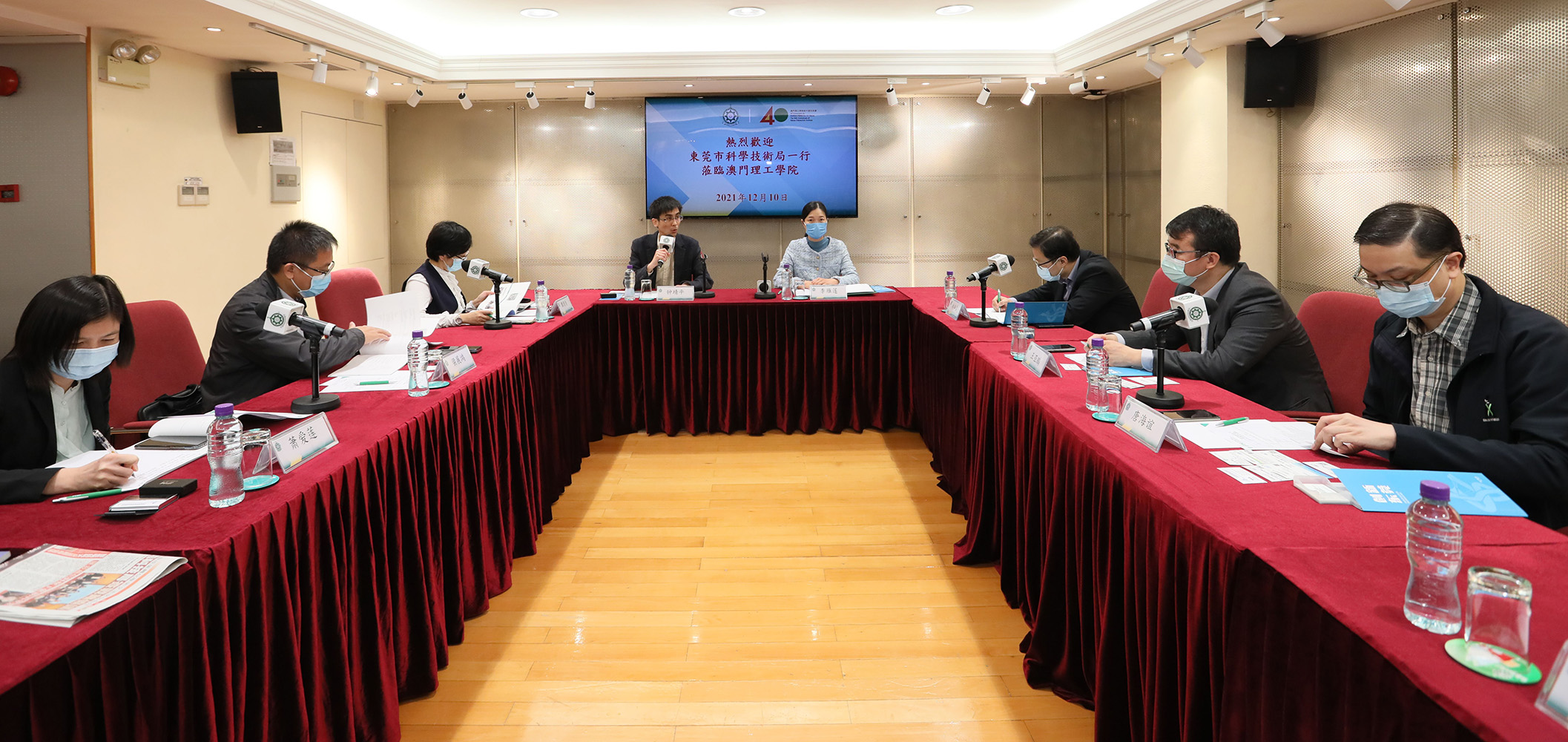 Participaram neste encontro os seguintes membros da delegação de Dongguan: a Subdirectora do Gabinete Preparatório de Universidades de Dongguan, Tan Yanzhen; o membro do Comité Administrativo da Zona de Alta Tecnologia de Songshanhu de Dongguan, Liang Zhanhong; a Economista Geral do Comité Administrativo da Zona de Alta Tecnologia de Binhaiwan de Dongguan, Xiao Ailian; a Subdirectora do Hospital Popular de Dongguan, Ou Caiwen; o Director do Gabinete para os Assuntos de Hong Kong, Macau e Taiwan de Donguan University of Technology, Wang Jihui; o Chefe da Secção de Laboratórios, Plataformas e Bases da Direcção dos Serviços de Ciência e Tecnologia de Dongguan, Sheng Yongming; o Subchefe da Secção de Gestão de Cooperação em Ciência e Tecnologia e Introdução de Inteligência da mesma direcção, Zhang Yuhui; o Subchefe da Secção de Transformação de Resultados e Inovação Regional da direcção, Dai Weixing; o Subdirector de Dongguan Elite Postgraduate Cultivation and Development Center, Zheng Jingzhi; a Administradora da Secção de Gestão de Cooperação em Ciência e Tecnologia e Introdução de Inteligência da Direcção dos Serviços de Ciência e Tecnologia, Yuan Jiaxin; o Gerente Geral de Dongguan Econtec Co., Ltd, Li Weirong; o Secretário-Geral de Dongguan High-Tech Industry Association, Diao Simian; o Subdirector do Centro de Inovação do Instituto de Investigação da Universidade Tsinghua em Dongguan, Wu Xinguo; e o Secretário-Geral da Associação de Promoção de Talentos em Ciência e Tecnologia de Dongguan, Huang Deyu. Pela parte do IPM, participaram no encontro: o Coordenador de Curso da Escola Superior de Ciências Aplicadas, Lam Chan Tong; o Professor Adjunto Wang Yapeng; o Coordenador de Curso da Escola Superior de Ciências de Saúde e Desporto, Tong Hoi Yee; a Chefe da Divisão de Assuntos de Estudantes, Lao Weng Ian; a Chefe substituta do Gabinete de Relações Públicas, Kuok Lai Ieng.
