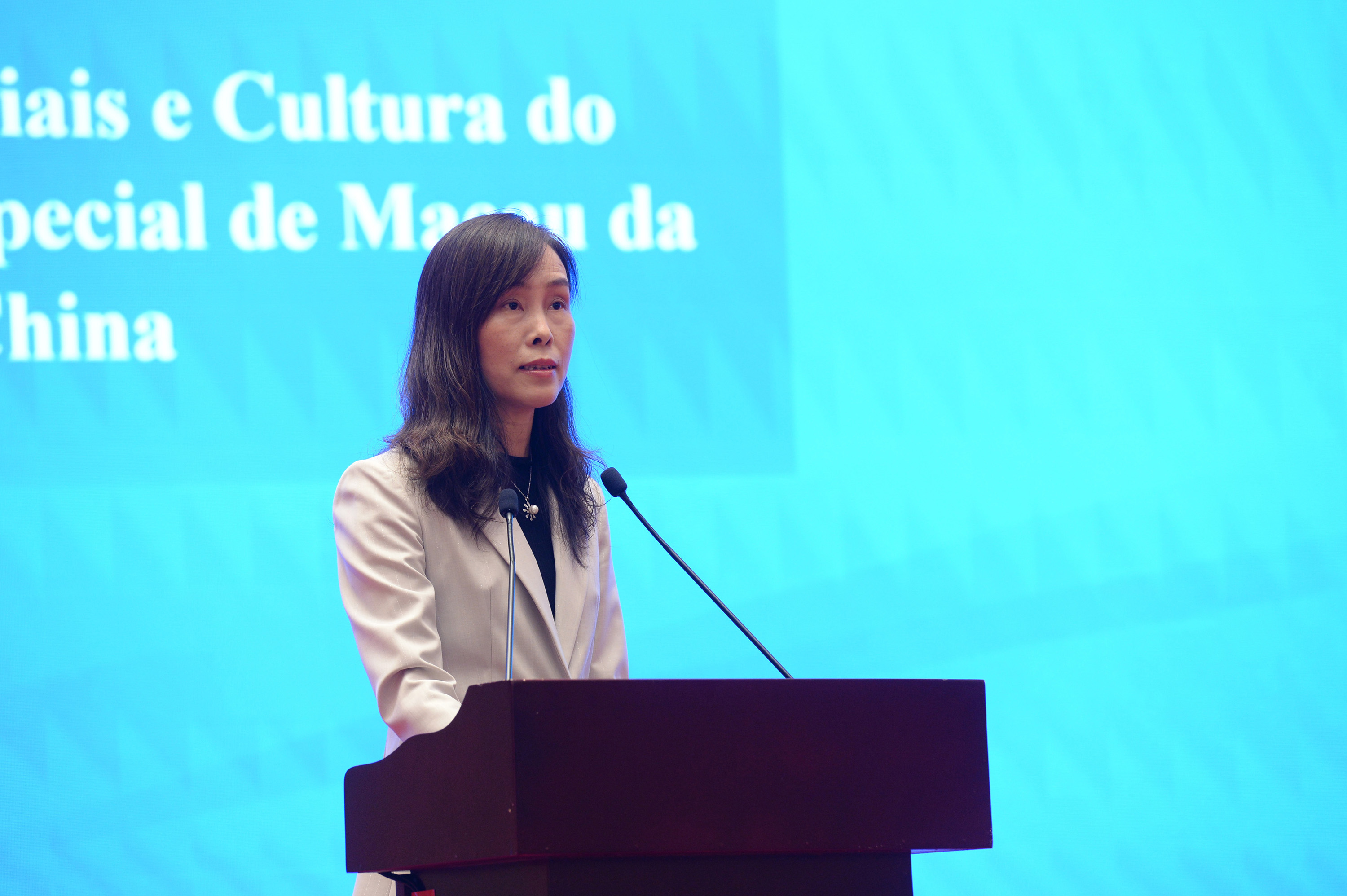A Secretária Ao Ieong U referiu que, devido à sua longa história de intercâmbio e laços culturais com os países de língua portuguesa, Macau possui as suas próprias vantagens na promoção da cooperação entre a China e os países de língua portuguesa, como os novos destaques nos últimos anos na cooperação nas áreas de Educação, Assuntos de Juventude, Cultura e Indústria de big health. Com o avanço progressivo da construção da Grande Baía Guangdong-Hong Kong-Macau e da Zona de Cooperação Aprofundada entre Guangdong e Macau em Hengqin, poder-se-á enriquecer o conteúdo e as funções de Macau como “Plataforma Sino-Lusófona”. Desejando a Secretária que as instituições académicas, tanto chinesas como lusófonas, possam alargar o seu intercâmbio e cooperação, e que Macau possa desempenhar ainda mais o seu papel de ponte de ligação, para estimular uma comunicação e cooperação mais estreitas entre a China e os países de língua portuguesa.