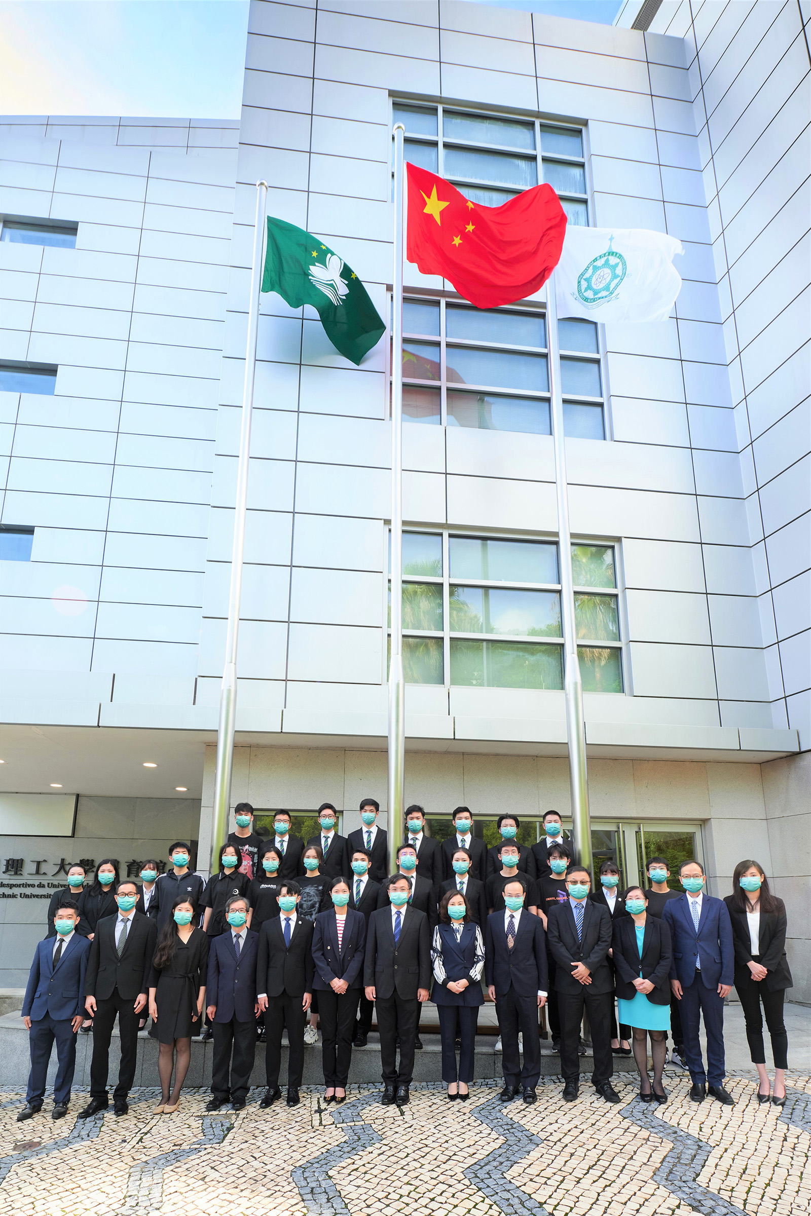 Para celebrar o 73.º Aniversário da Implantação da República Popular da China, a Universidade Politécnica de Macau realizou, no dia 1 de Outubro, na sede da Universidade, a Cerimónia do Hasteamento das Bandeiras, de forma a expressar votos de felicidades à Pátria no Dia Nacional, desejando a prosperidade e a segurança do País e da população.