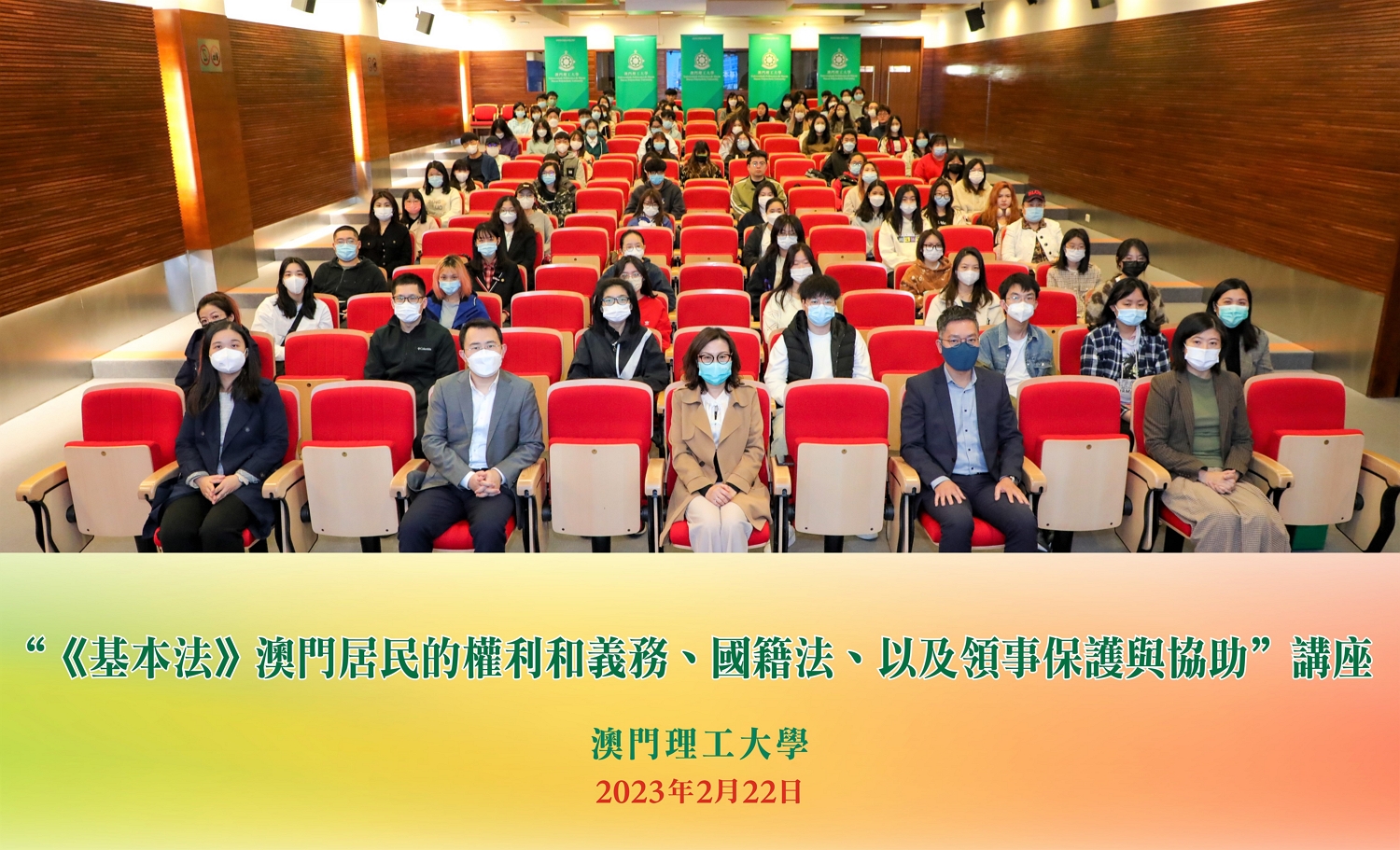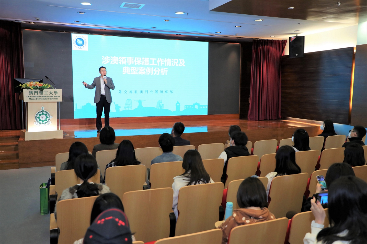 Para reforçar os conhecimentos dos estudantes universitários sobre a Lei Básica, Lei da Nacionalidade e os serviços de protecção consular, no dia 22 de Fevereiro, a Divisão de Assuntos dos Estudantes da Universidade Politécnica de Macau realizou uma palestra intitulada “Direitos e Deveres dos Residentes de Macau no âmbito da Lei Básica, Lei da Nacionalidade e Protecção e Assistência Consulares”. O Primeiro Secretário do Departamento dos Assuntos Consulares do Comissariado do Ministério dos Negócios Estrangeiros da República Popular da China na RAEM, Wang Xiaochu, e o Chefe do Departamento de Identificação de Residentes da Direcção dos Serviços de Identificação da RAEM, Lau David, foram convidados a dar esta palestra. A Secretária-Geral da Universidade Politécnica de Macau, Lei Vai Fong, e mais de uma centena de professores e alunos estiveram presentes no evento, tendo o evento sido realizado num ambiente agradável e de grande entusiasmo de intercâmbio.