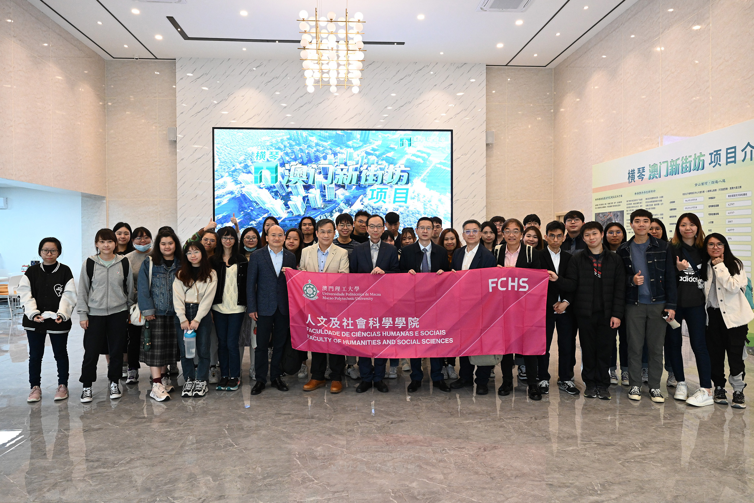 Para aprofundar o conhecimento dos professores e alunos do curso de Serviço Social sobre os respectivos serviços prestados na Zona de Cooperação Aprofundada entre Guangdong e Macau em Hengqin, no dia 27 de Março, mais de 40 professores e alunos do Curso de Licenciatura em Serviço Social da Faculdade de Ciências Humanas e Sociais da Universidade Politécnica de Macau (FCHS-UPM) realizaram uma visita de estudo e intercâmbio à Zona de Cooperação Aprofundada em Hengqin.