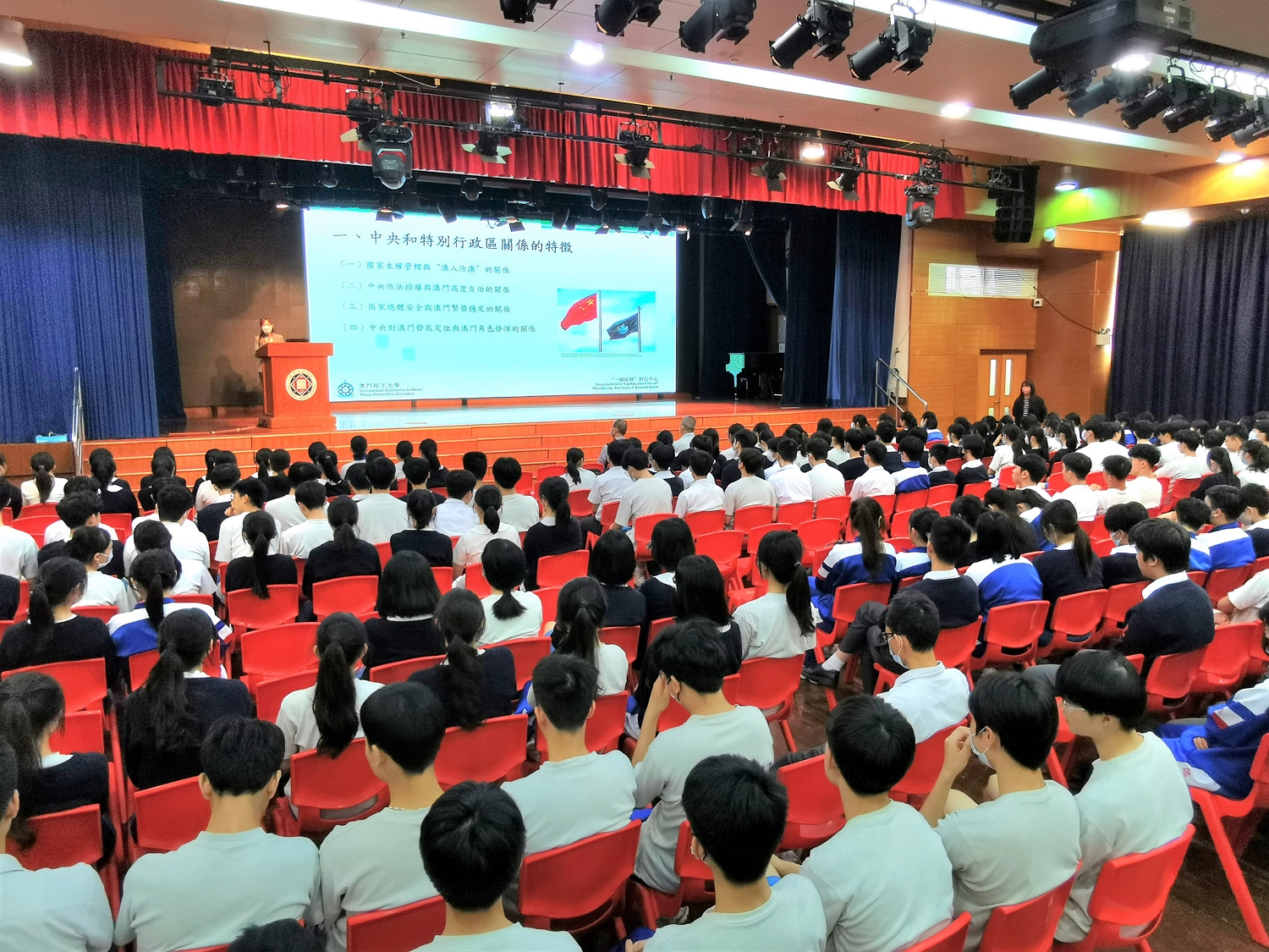 Entre Janeiro e Maio deste ano, o Centro de Estudos “Um País, Dois Sistemas” da Universidade Politécnica de Macau realizou 16 palestras para professores e alunos nas escolas secundárias de Macau. Na Escola Hou Kong, na Escola Kao Yip, na Escola Oficial Zheng Guanying, na Escola Secundária Nocturna Xin Hua, no Colégio do Sagrado Coração de Jesus - Secção Inglesa, na Escola Keang Peng, na Escola Xin Hua, na Escola Pui Va, no Instituto Salesiano da Imaculada Conceição, e na Escola Secundária Sam Yuk de Macau, foi abordado o tema “Vamos Conhecer a Segurança Nacional”. A partir do conceito geral da segurança nacional, os oradores esclareceram de forma simplificada a situação mais recente da segurança nacional, as exigências básicas do conceito geral de segurança nacional e a construção do regime de defesa da segurança nacional na Região Administrativa Especial de Macau, bem como a relação entre a prosperidade e segurança do País e prosperidade e estabilidade de Macau.