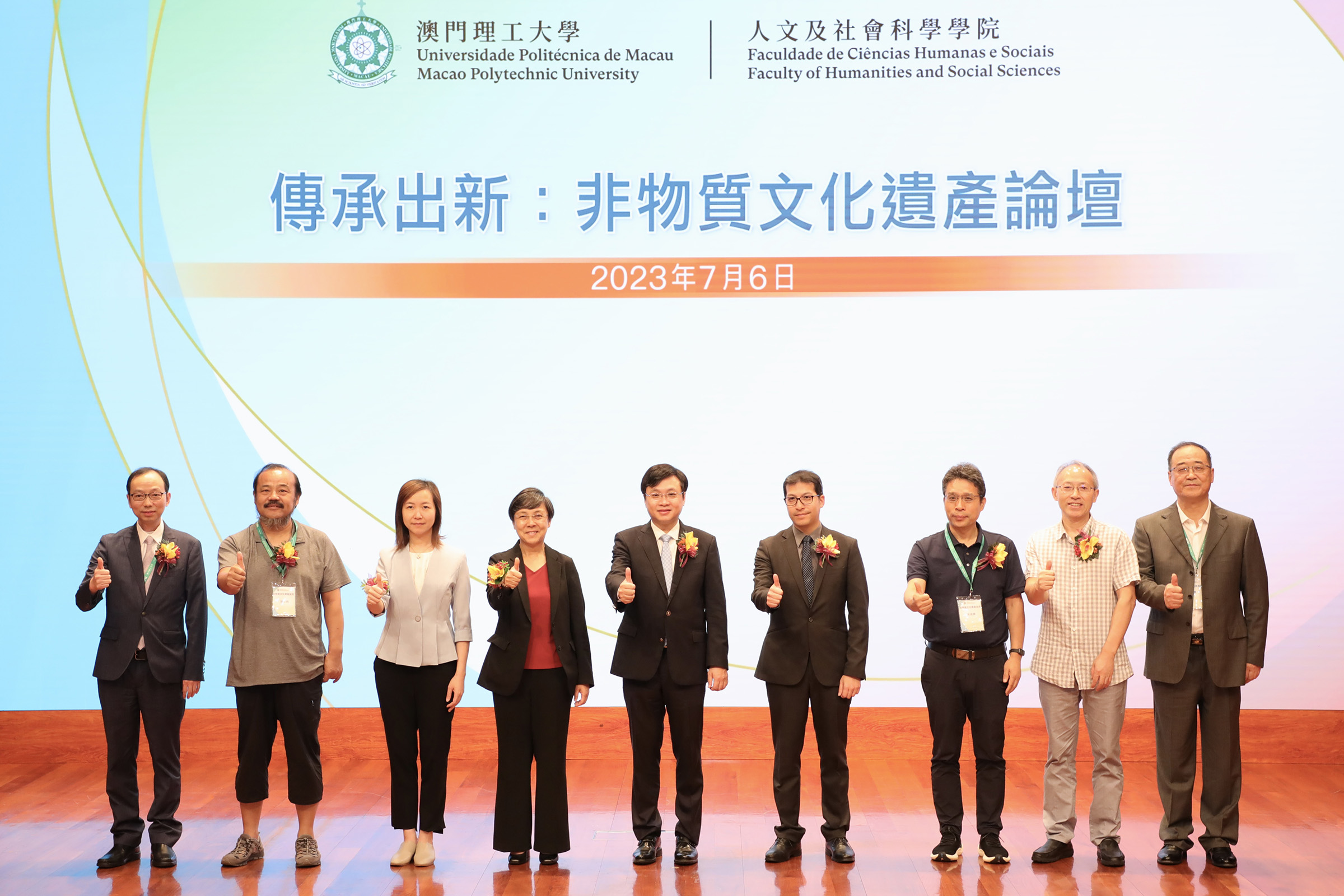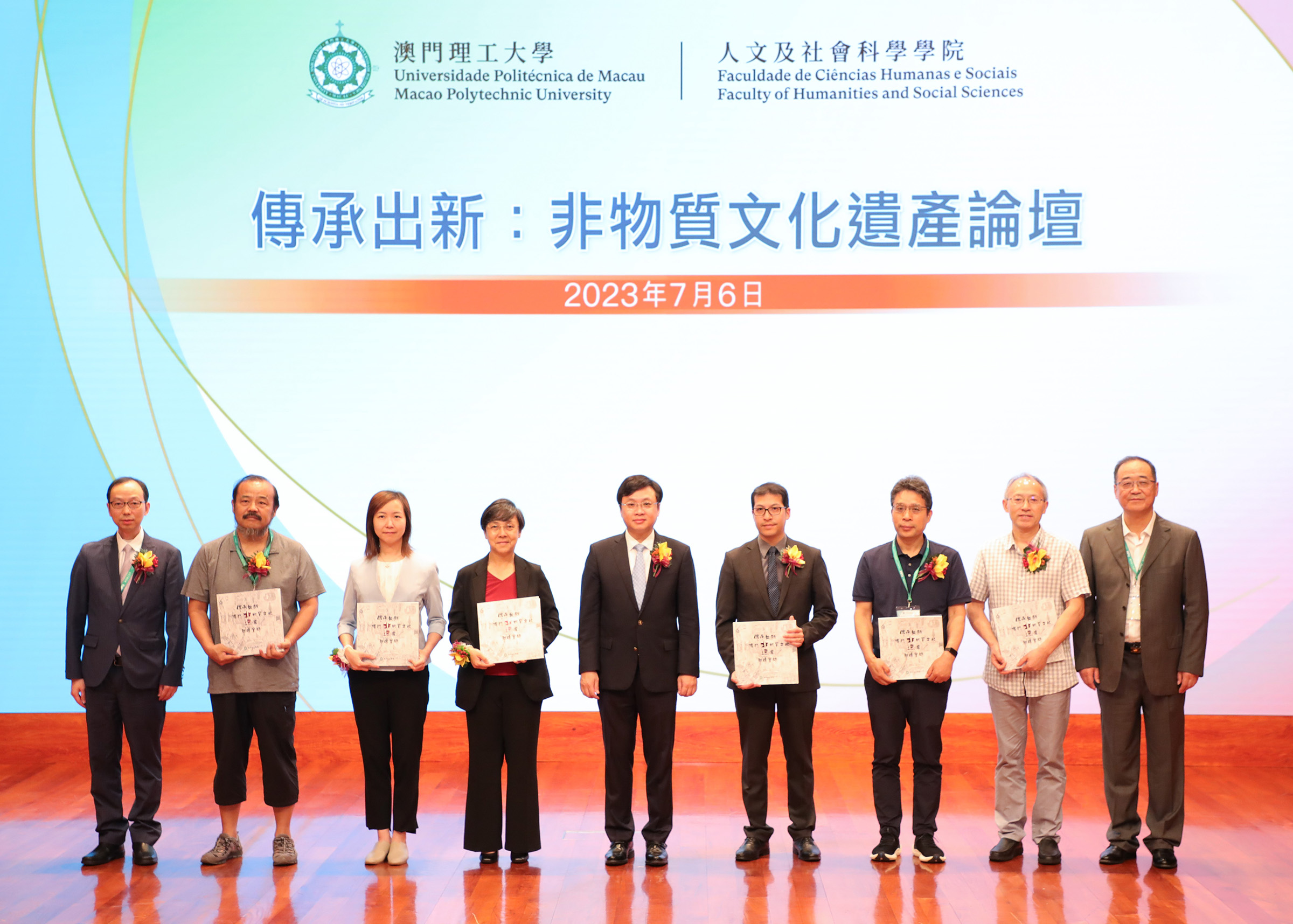 Com vista a cooperar com a construção da “base de intercâmbio e cooperação que, tendo a cultura chinesa como predominante, promove a coexistência de culturas diversificadas” em Macau, promover o desenvolvimento da indústria cultural e turística de Macau e aprofundar o desenvolvimento cultural da Zona da Grande Baía Guangdong-Hong Kong-Macau, a Faculdade de Ciências Humanas e Sociais da Universidade Politécnica de Macau organizou, no dia 6 de Julho, um fórum intitulado " Herança e Renovação: Património Cultural Intangível”, explorando questões teóricas e práticas de conservação, transmissão e desenvolvimento do património cultural intangível. Através da combinação dos seminários académicos, exposições e espectáculos de arte dos transmissores do património cultural intangível, o fórum demonstra de forma intuitiva e vívida o encanto da cultura do património cultural intangível e a diversidade cultural de Macau. O fórum contou com a participação de mais de uma centena de pessoas, incluindo especialistas e académicos de Pequim, Shandong, Guangdong e Macau, responsáveis e transmissores das associações do património cultural intangível de Macau, e professores e alunos da UPM.
