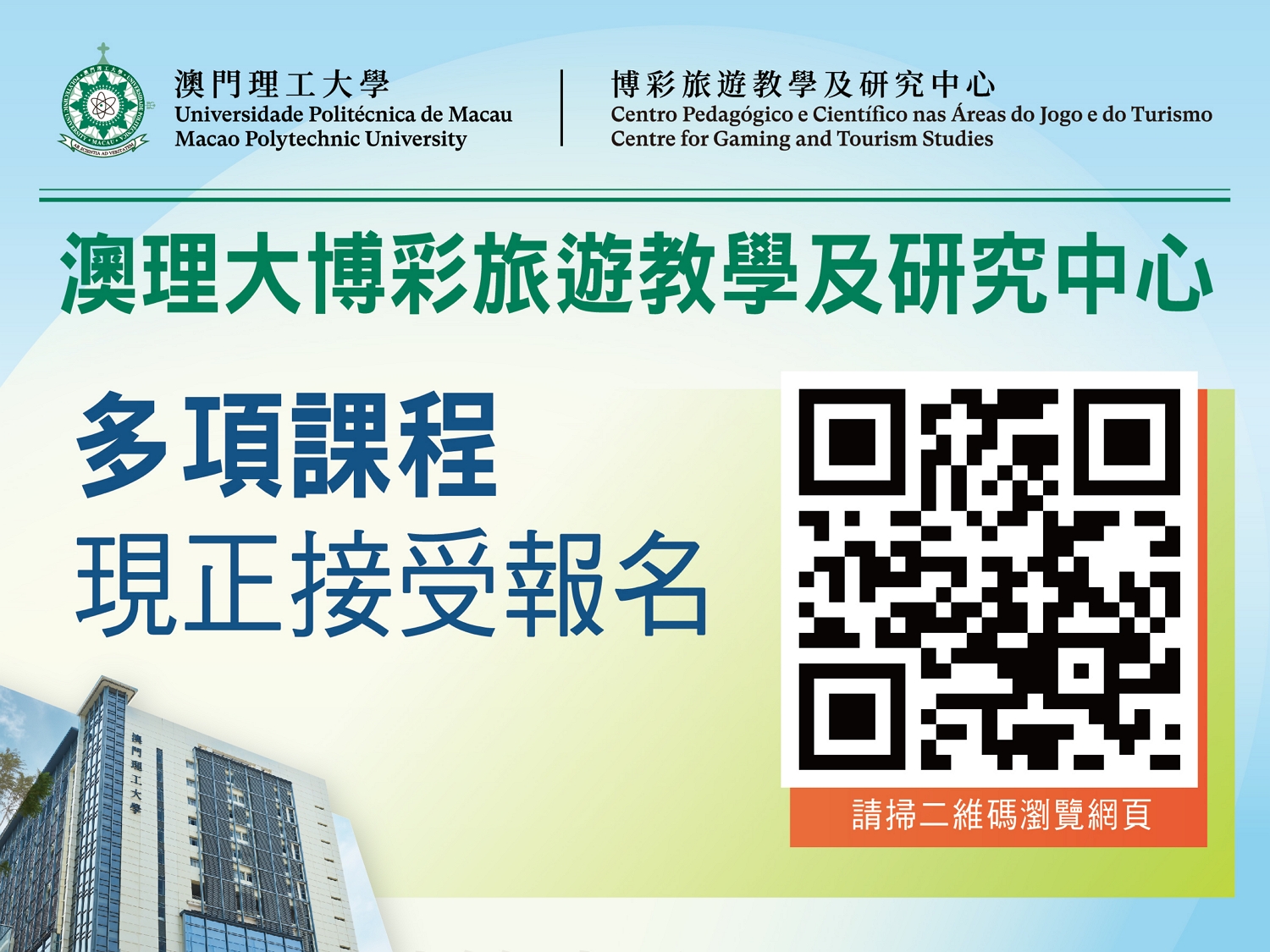 Em articulação com o desenvolvimento da diversificação adequada da economia “1+4” de Macau, bem como para apoiar a formação de quadros qualificados de multi-habilidades para a indústria do turismo e lazer de Macau, o Centro Pedagógico e Científico nas Áreas do Jogo e do Turismo da Universidade Politécnica de Macau (CJT-UPM) tem-se empenhado no ensino, na investigação científica e nos serviços sociais, lançando vários cursos de formação profissional destinados aos trabalhadores do respectivo sector e ao público em geral. No primeiro trimestre de 2024, para além dos cursos de formação organizados em conjunto com a Direcção de Inspecção e Coordenação de Jogos (DICJ) e a Direcção dos Serviços para os Assuntos Laborais (DSAL), o CJT lança ainda vários cursos com características próprias. Todos os interessados são bem-vindos, podendo inscrever-se nos cursos.